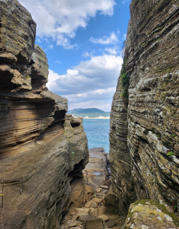 특히 이곳은 날씨가 좋을 때만 입장이 가능하기 때문에 방문 전 기상 상태를 꼭 확인하고 가시는 것이 중요합니다. 해안선을 따라 걷다 보면 수백만 년에 걸쳐 쌓인 사암층이 층층이 드러나면서 장대한 자연의 위대함을 느낄 수 있습니다. 용머리해안의 사암층은 독특한 무늬와 형태로 사진을 찍기에 매우 좋고, 제주도의 청명한 하늘과 대비되어 환상적인 풍경을 자아냅니다.