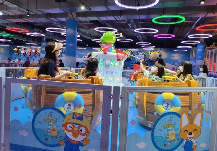 테마파크는 크게 두 구역으로 나뉘어 있습니다. 영유아를 위한 '뽀로로파크'와 조금 더 큰 아이들이 즐길 수 있는 '타요 트럼펄린파크'로 나뉘어 있어, 아이들의 연령대에 맞는 놀이시설을 선택할 수 있습니다. 뽀로로파크에서는 뽀로로 기차, 볼풀장, 미끄럼틀, 낚시놀이 등 다양한 놀이기구를 즐길 수 있고, 타요 트럼펄린파크에서는 아이들이 신나게 뛰어놀 수 있는 트램펄린이 준비되어 있습니다.