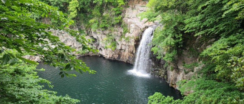 제1폭포는 천제연폭포 중 가장 큰 규모를 자랑하며, 에메랄드빛 물이 흐르는 모습이 매우 인상적입니다. 폭포 주변으로는 잘 조성된 산책로가 있어 가볍게 산책하며 자연의 소리를 들을 수 있습니다. 주변의 울창한 난대림 숲과 어우러진 폭포는 마치 한 폭의 그림처럼 아름답습니다.