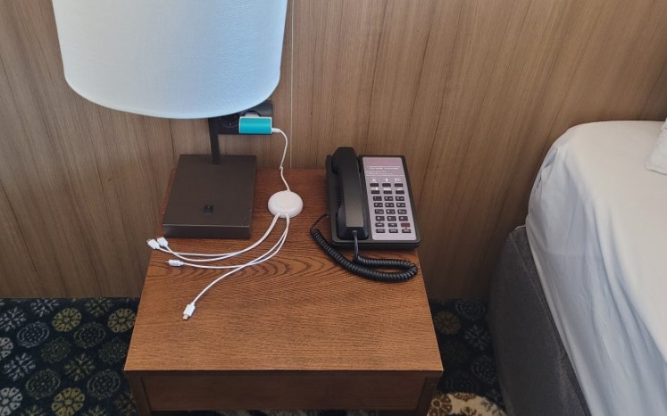 특히 개인적으로 가져온 충전기를 사용하지 않아도 되는 점은 매우 편리하게 느껴졌습니다. 벽면에는 냉난방 조절기도 있어서, 기호에 따라 온도를 조절하며 숙박할 수 있습니다.