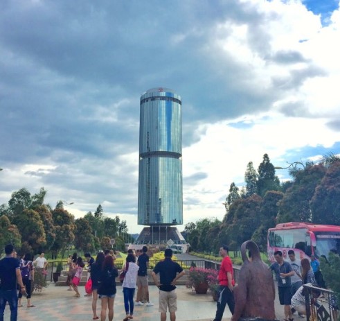 사바 주 청사는 그 모양 때문에 한국 사람들 사이에서는 '배터리 빌딩'이라는 별명으로 불리기도 하는데요, 실제로 건전지처럼 생긴 건물의 디자인이 독특해 많은 관광객들이 이곳에서 사진을 찍습니다.