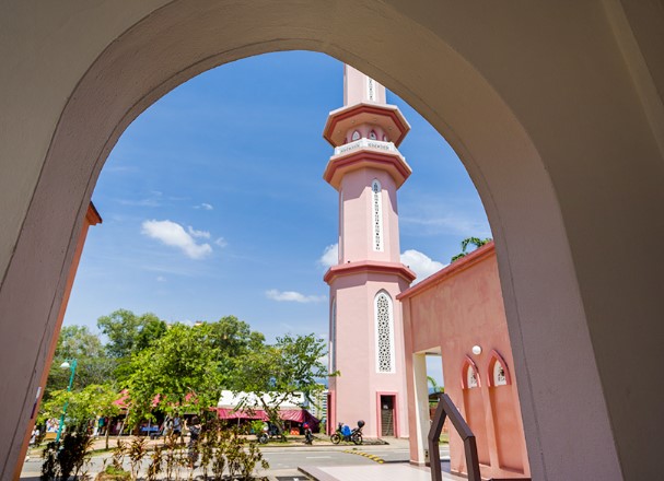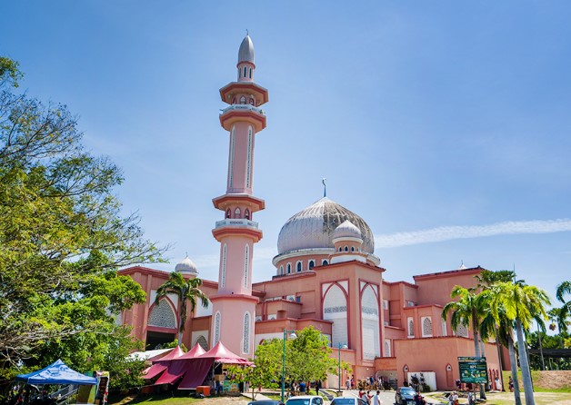 두 번째로 방문한 곳은 많은 한국인 여행자들이 사랑하는 핑크 모스크입니다. 사바 주립 대학교 내에 위치한 이 모스크는 그 이름처럼 핑크빛 외관이 인상적인데요, 사실 핑크보다는 코랄 색에 더 가깝습니다.