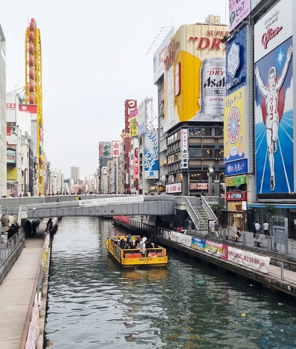 리버크루즈는 오사카의 대표적인 랜드마크, 글리코상 앞을 지나며 멋진 야경을 즐길 수 있어 여행객들에게 인기가 높습니다.