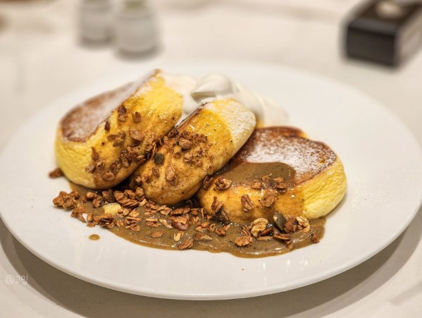 이곳의 시그니처 메뉴인 수플레 팬케이크는 부드러운 식감과 달콤한 맛이 일품입니다.