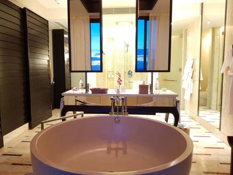 객실의 내부는 세련된 인테리어와 함께 편안함이 강조된 느낌이었습니다. 침실과 욕실이 분리되어 있어 더 편리하게 사용할 수 있었고, 공간도 넉넉해서 답답하지 않고 여유롭게 지낼 수 있었어요. 객실 곳곳에 고급스러운 디테일이 살아 있어 더욱 럭셔리한 분위기를 느낄 수 있었습니다.
