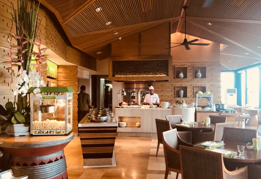 다양한 뷔페 메뉴를 제공하며, 아침부터 샴페인을 곁들일 수 있어 여행 중 여유와 호사를 누릴 수 있는 경험을 제공합니다. 야외 테이블에서 바라보는 풍경은 아침을 더욱 특별하게 만들어주며, 망고스틴 등 열대과일을 직접 주문해 즐길 수 있습니다.