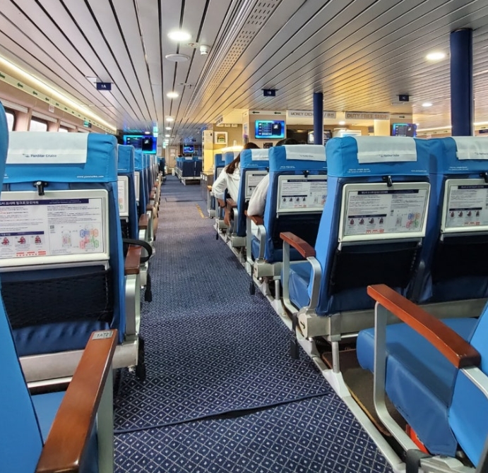 아침 일찍 출발해야 해서 피곤할 것 같았지만, 해외로 떠난다는 설렘 덕분인지 피곤함도 잊을 정도였어요. 배에 탑승하고 나니 창밖으로 보이는 푸른 바다 풍경이 너무나 멋졌고, 바닷바람이 시원해서 기분까지 상쾌해졌어요.