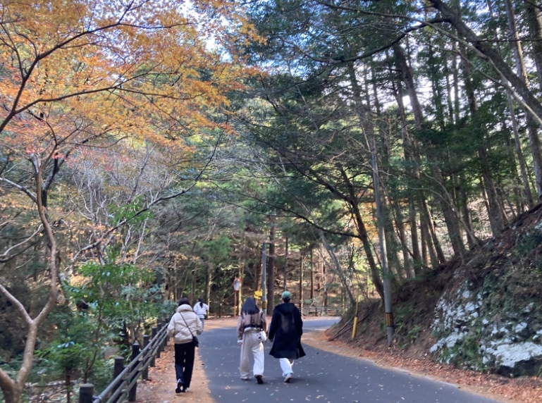 쇼핑을 마친 후, 조금은 색다른 경험을 하기 위해 슈시 산림길로 이동했어요. 대마도는 자연이 아름다운 곳으로 유명한데, 이곳에서는 일본 특유의 조용하고 차분한 숲길을 따라 걸을 수 있답니다.