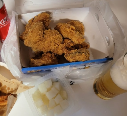 보통 후라이드 치킨을 먹으면 시간이 지나면서 눅눅해지곤 하지만, 황금올리브 치킨은 바삭함이 오래 유지되는 편이라 배달로 주문해도 퀄리티가 좋습니다.