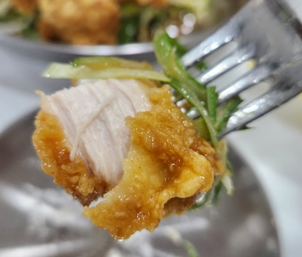 튀김옷은 적당히 바삭하면서도 소스가 촉촉하게 스며들어 있어, 겉은 크리스피하고 속은 촉촉한 식감을 즐길 수 있습니다.