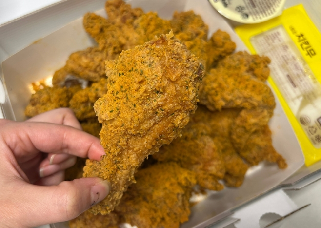 치킨을 한 입 먹었을 때, 마요네즈의 부드러운 고소함과 함께 달콤한 맛이 느껴집니다. 그런데 그 뒤로 청양고추의 매운맛이 슬며시 올라오면서, 매운맛이 중독적이게 다가옵니다. 이 매운맛이 자극적이지 않으면서도 끝없이 손이 가는 맛이죠.