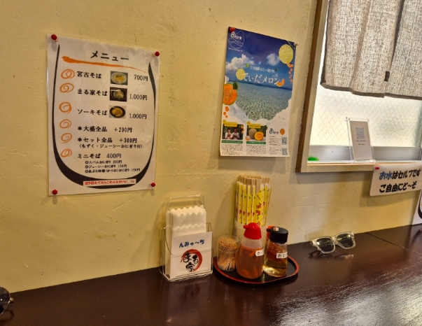 마루야 식당은 신선한 현지 재료로 만든 요리를 제공하는 것으로 유명한데, 그중에서도 가장 유명한 메뉴는 미야코소바였습니다. 미야코소바는 미야코지마의 대표적인 향토 음식으로, 얇은 면발과 진한 육수가 특징입니다.