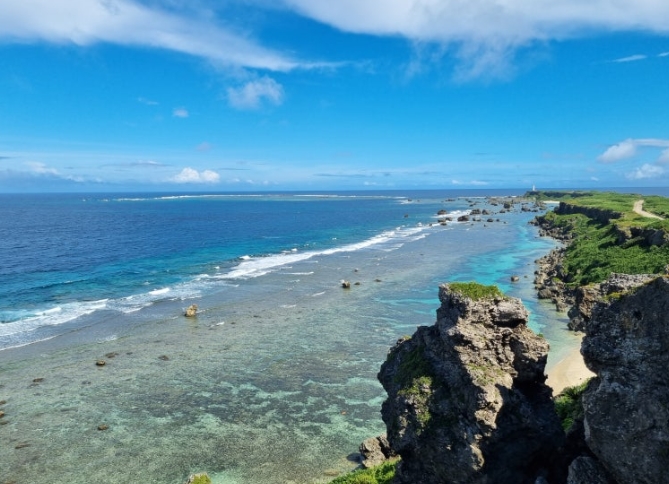 이곳은 미야코지마의 동쪽 끝에 위치한 곳으로, 거대한 바위 절벽과 짙푸른 바다가 만들어내는 풍경이 인상적이었어요. 차를 타고 해안도로를 따라 이동하는 동안에도 아름다운 바다 풍경을 감상할 수 있었습니다.