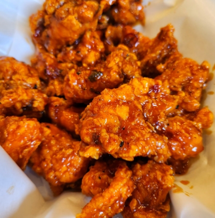 일반 순살치킨은 보통 한 입 크기라 아쉽게 느껴질 때가 많았는데, 이 메뉴는 큼직한 한 조각이 입안을 꽉 채워줘서 정말 만족스러웠어요.