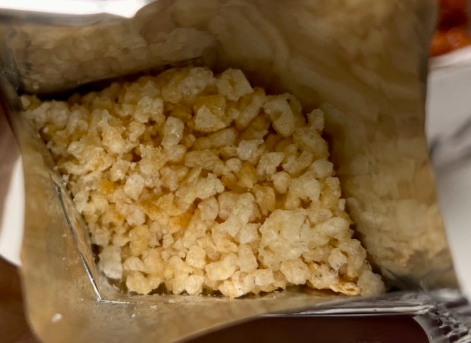특히 인상 깊었던 건 누룽지 토핑이었어요. 따로 포장돼 있어 직접 뿌려 먹는 방식인데, 처음엔 누룽지가 더 크고 두툼할 줄 알았거든요. 그런데 생각보다 작은 크기의 누룽지가 설탕과 잘 섞여 바삭한 식감을 내줘서 색다른 재미가 있었어요.