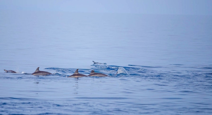 그리고 정말로 멀지 않은 곳에서 돌고래 떼가 유유히 헤엄치는 모습이 보였어요. 자연 속에서 마주한 돌고래는 그저 신기하고 감동 그 자체였습니다.