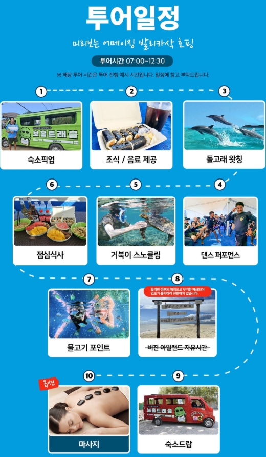 필리핀 보홀은 아름다운 자연과 다양한 해양 생물로 유명한 여행지입니다. 그중에서도 발리카삭 섬에서의 호핑투어는 많은 여행자들이 추천하는 필수 코스 중 하나입니다. 이번 여행에서는 보홀트래블의 '어메이징 발리카삭 호핑투어'를 체험하며 잊지 못할 추억을 만들었습니다