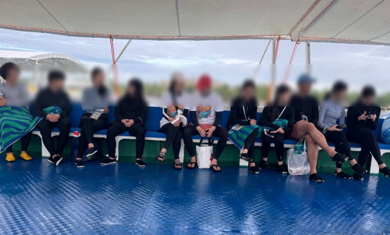배가 출발하고 얼마 지나지 않아, 본격적인 호핑투어의 첫 코스인 돌고래 왓칭을 하게 되었습니다. 망망대해를 달리던 중 가이드님이 돌고래 출몰 포인트에 도착했다고 알려주셨고, 모두가 숨을 죽이며 수면을 응시했습니다.