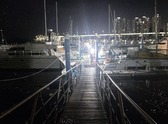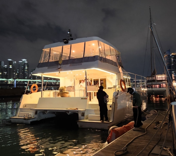 승선. 따뜻한 요트 위, 밤바다를 만나다