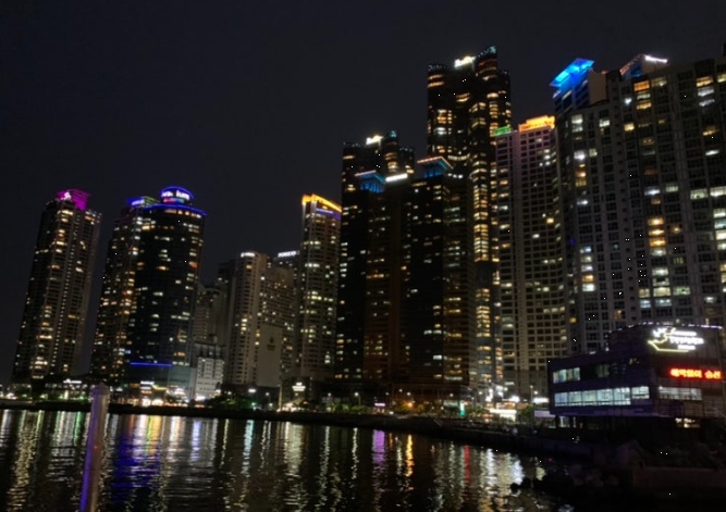 요트는 광안대교를 지나 마린시티 쪽으로 방향을 바꿔요. 고층 빌딩들의 불빛이 물결 위로 반사되며 마치 영화 속 한 장면처럼 느껴졌어요.