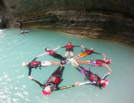캐니어링은 바위 계곡을 따라 점프하고, 미끄러지고, 수영하며 이동하는 모험 스포츠예요. 안전장비를 착용하고 가이드의 설명을 들은 후 본격적인 모험이 시작됐죠.