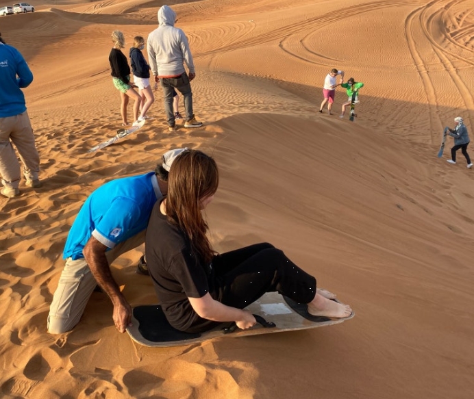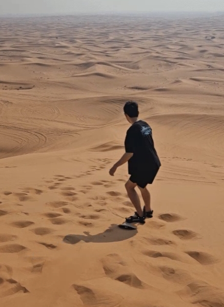 눈썰매 타듯 보드를 타고 모래 언덕을 내려가는 체험이었어요. 생각보다 속도가 나서 놀랐지만 넘어져도 아프지 않아 걱정 없었어요.