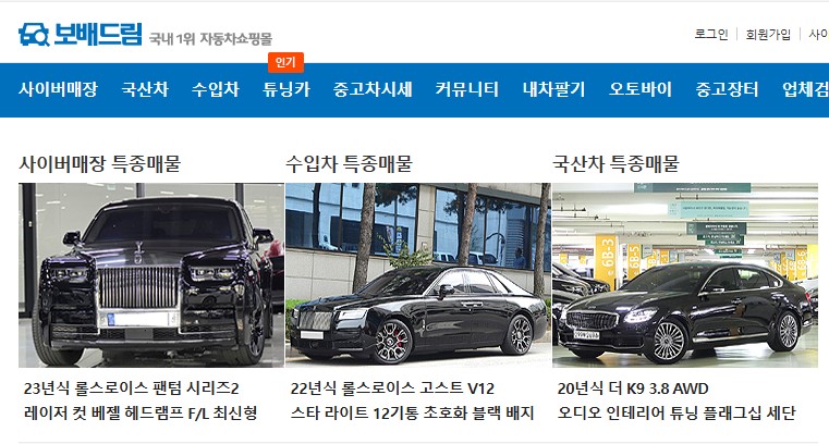 보배드림은 자동차를 좋아하는 사용자들이 많이 모이는 커뮤니티로, 중고차 거래와 더불어 다양한 정보 교류가 이루어지는 곳입니다. 커뮤니티와 중고차 매매가 결합된 독특한 플랫폼으로, 사용자 간 신뢰를 바탕으로 한 직거래가 가능합니다.