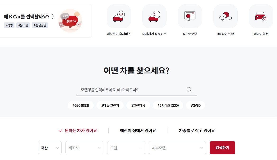 K카는 차량을 직영으로 관리하고 운영하는 중고차 매매 사이트로, 신뢰성과 투명성에서 높은 평가를 받고 있습니다. K카는 차량 상태를 엄격하게 관리하며, 직영으로 운영하기 때문에 엔카에 비해 차량 수는 적을 수 있지만, 그만큼 신뢰할 수 있는 품질을 보장합니다.