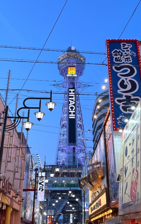 저녁 무렵에는 츠텐카쿠 타워로 이동해 오사카의 야경을 감상했습니다.